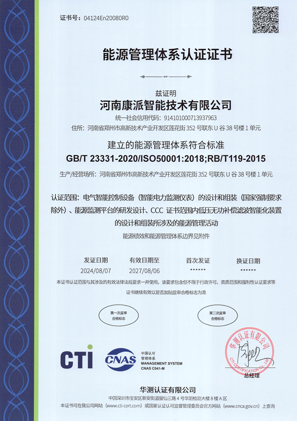 能源管理體系認證證書